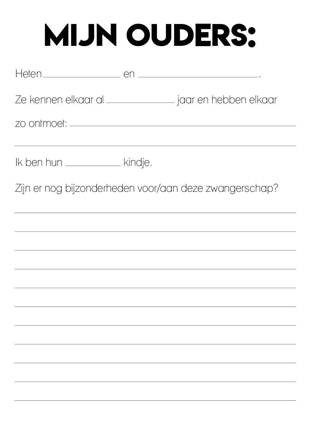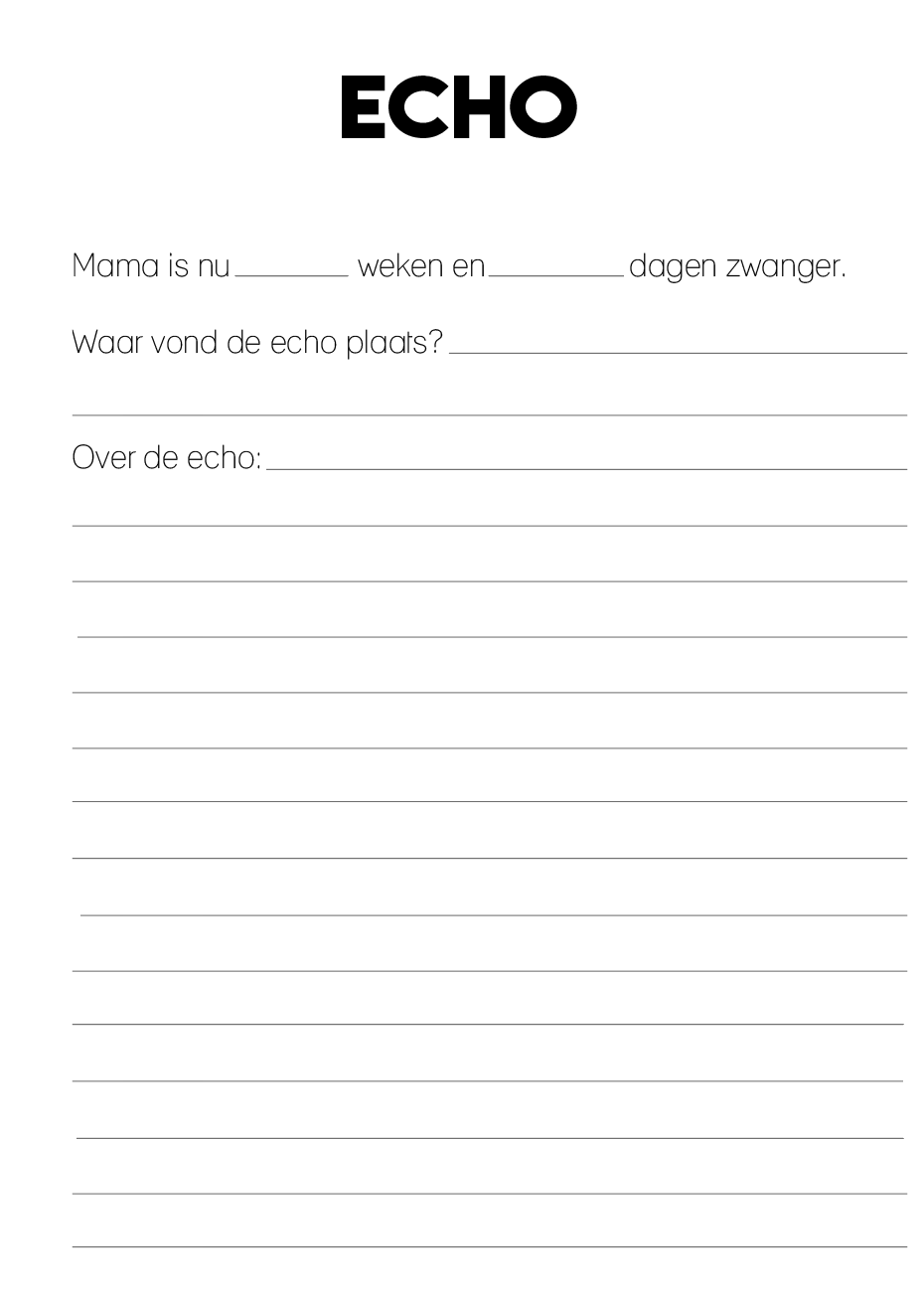 - Indeling: heldere, rustige invulpagina’s afgestemd op echo momenten en zwangerschap