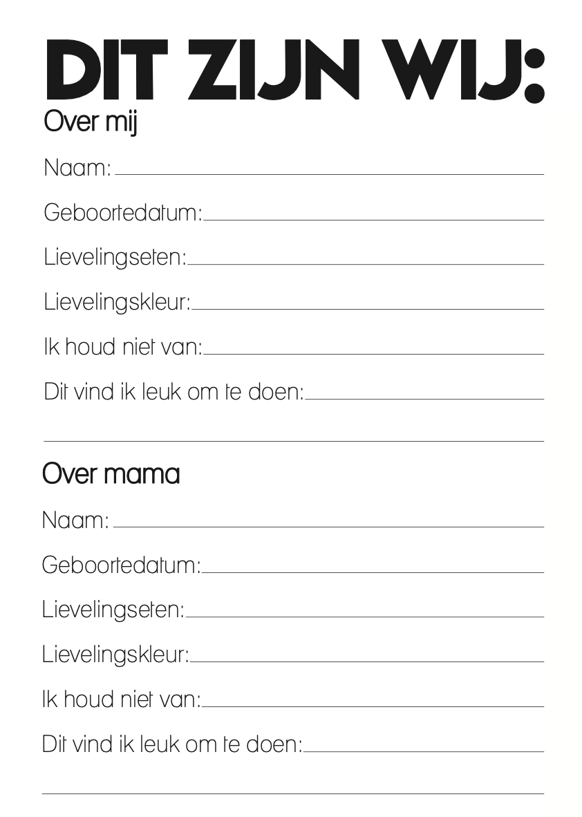 • Geen druk of tijdslimiet: mama kan het boek invullen wanneer ze wil, in haar eigen tempo