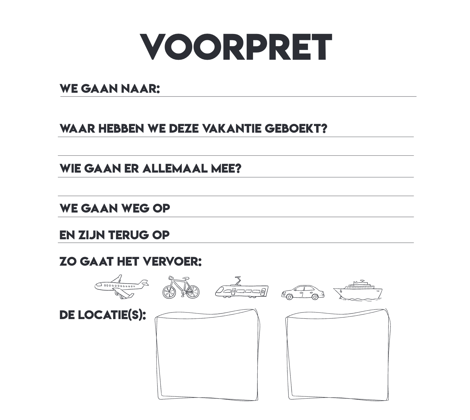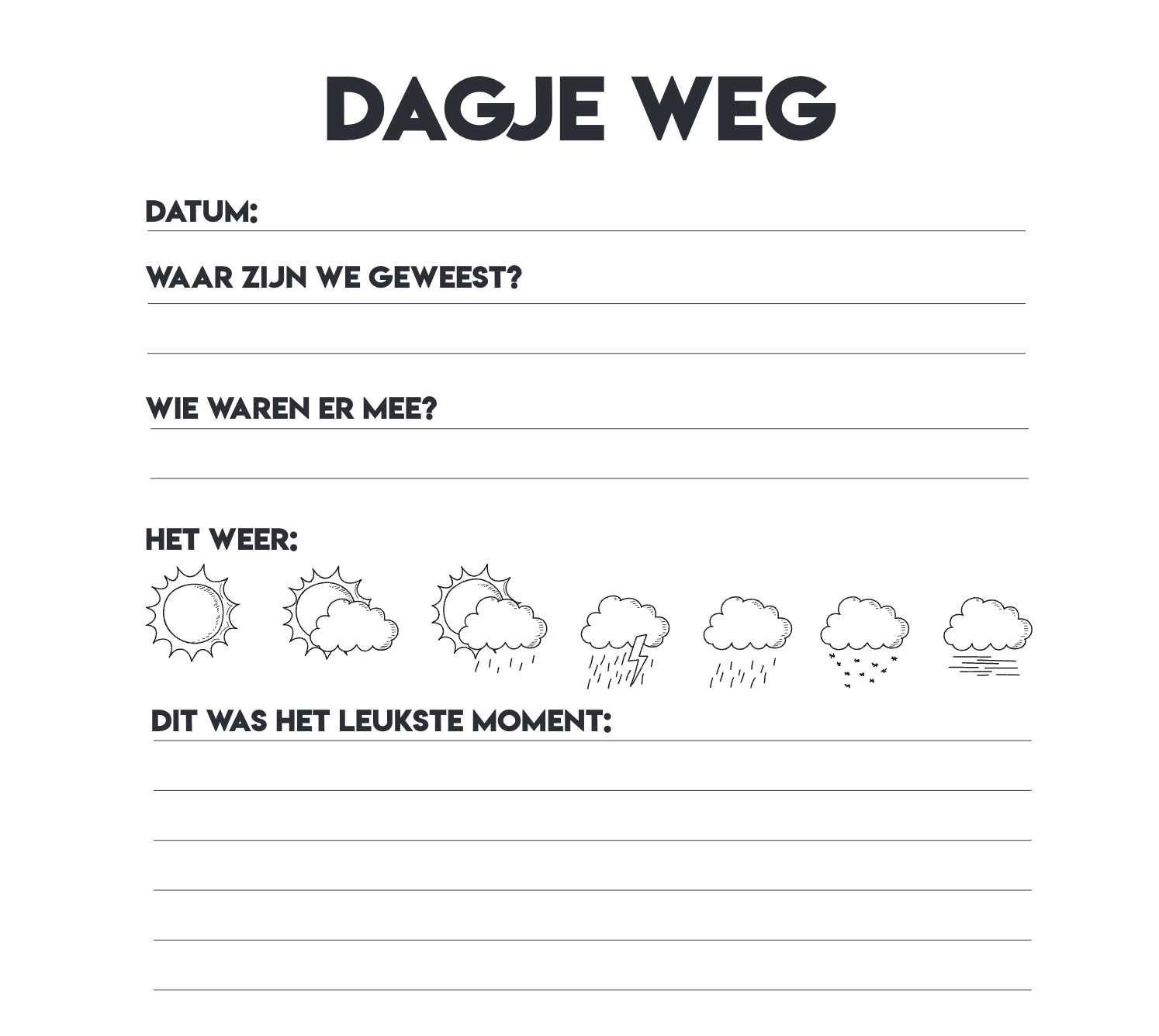 - Invulpagina’s voor vakantiedagen, dagjes weg en hoogtepunten