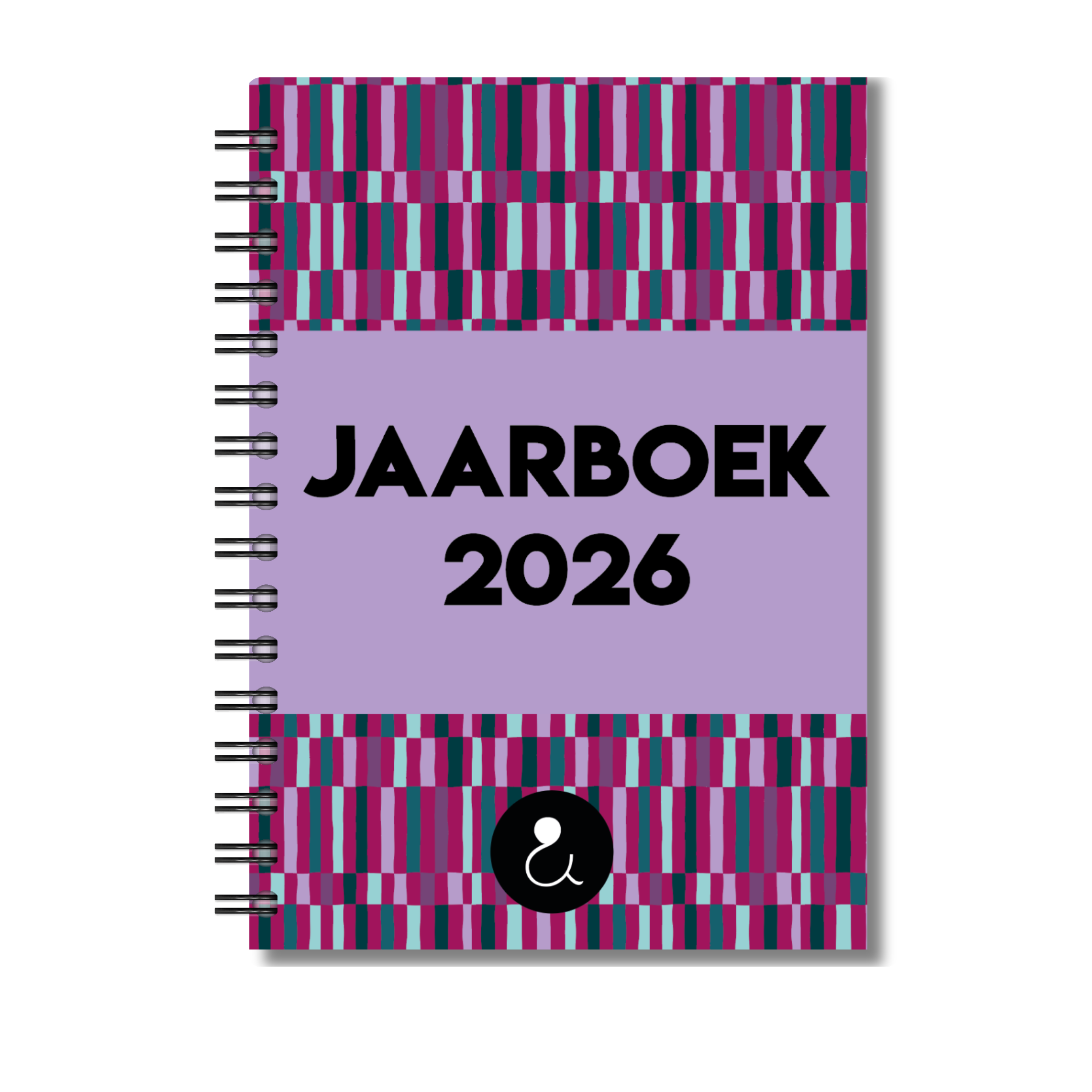 Jaarboek 2026 A5 | Blanco Jaarboek A5 2026 | Fotoboekje Jaarboek | 14,8x21cm | Paars Hokjes