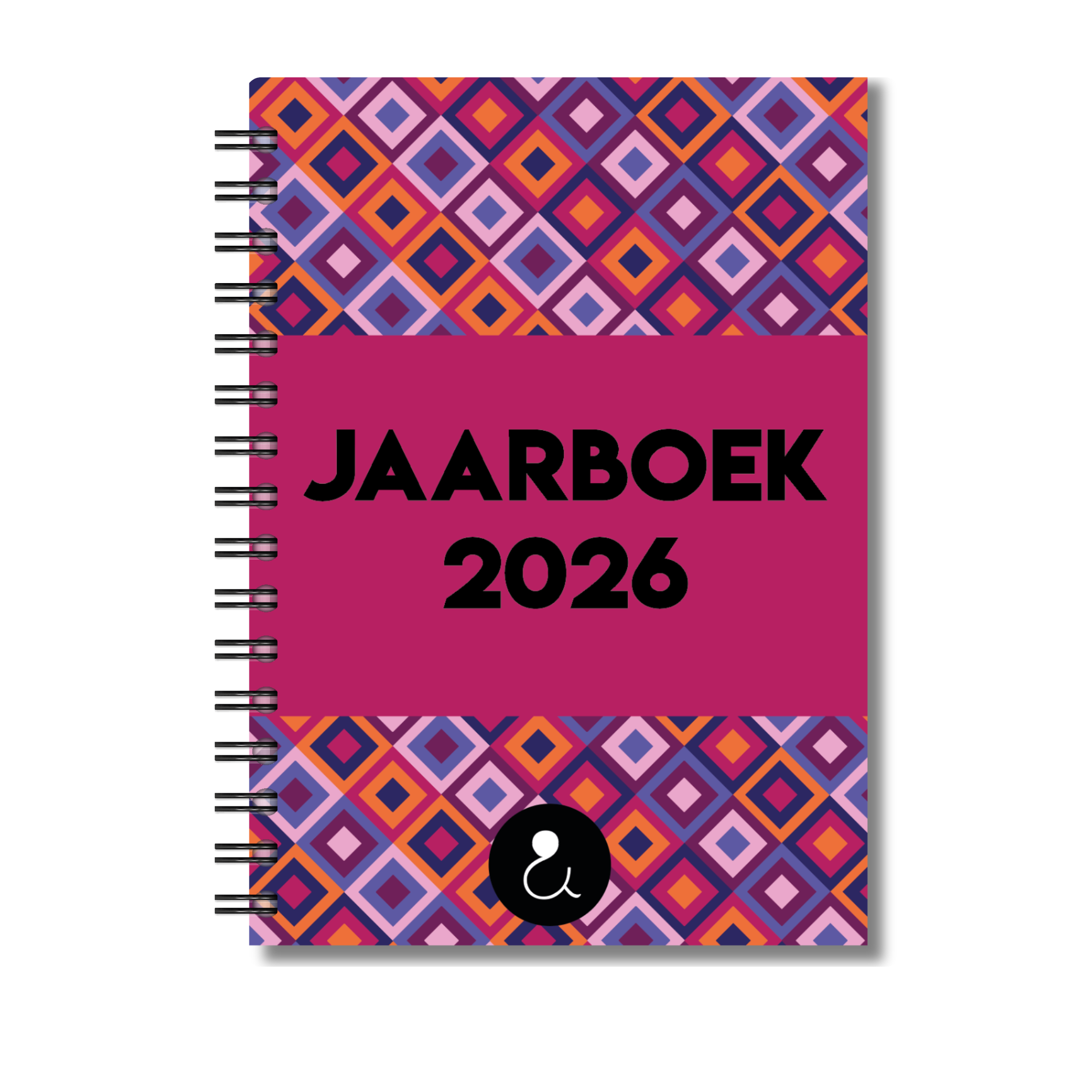 Jaarboek 2026 A5 | Blanco Jaarboek A5 2026 | Fotoboekje Jaarboek | 14,8x21cm | Paars Ruitjes