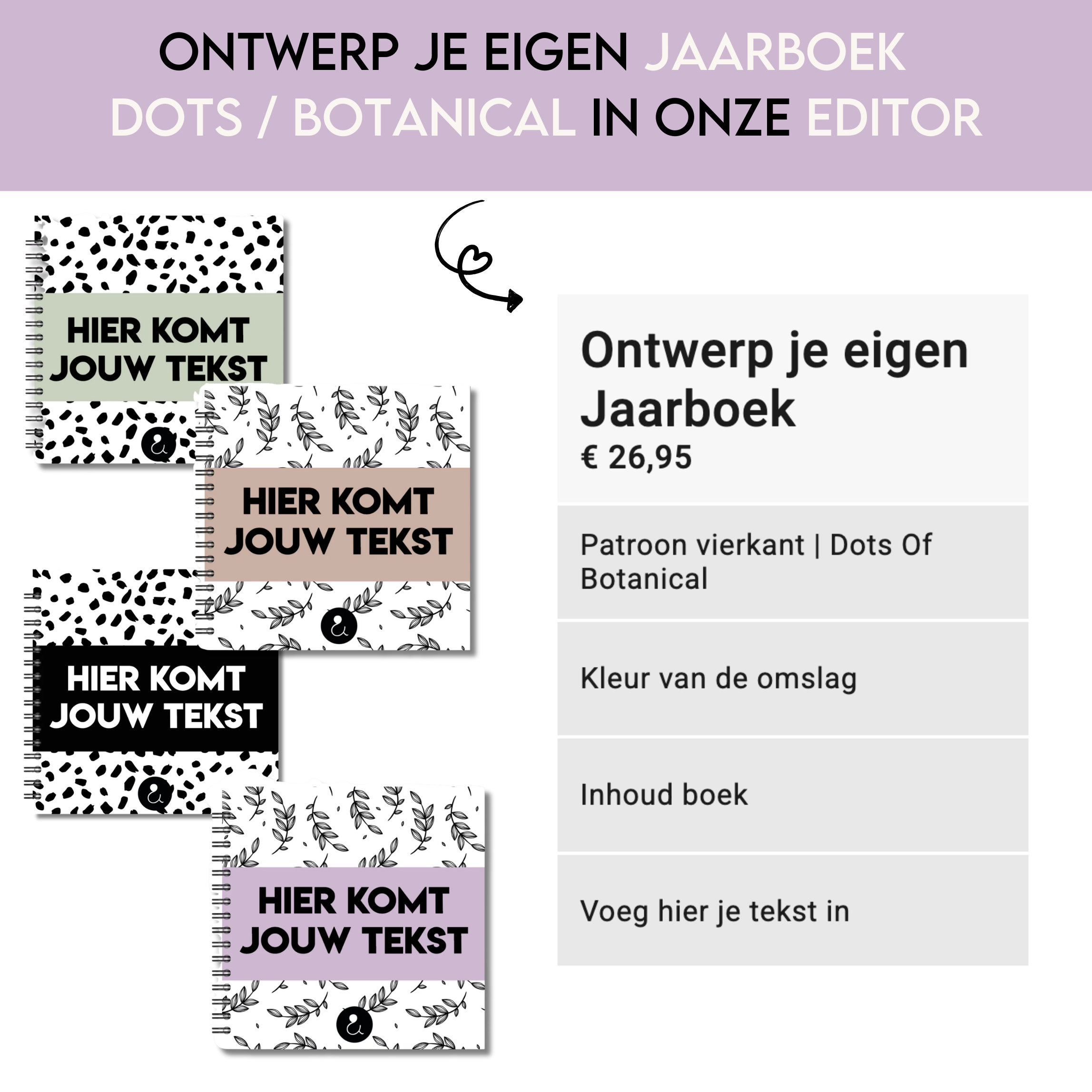 Een jaarboek zelf samenstellen betekent volledige vrijheid in uitstraling en indeling. Kies een cover met jouw eigen print en tekst en maak zo een gepersonaliseerd jaarboek dat perfect aansluit bij jouw stijl. Gebruik het als fotoboek met jaaroverzicht, creatief plakboek of persoonlijk dagboek van het jaar. Of je nu kiest voor een invulstructuur of blanco pagina’s, jij bepaalt hoe uitgebreid of minimalistisch je het boek invult.