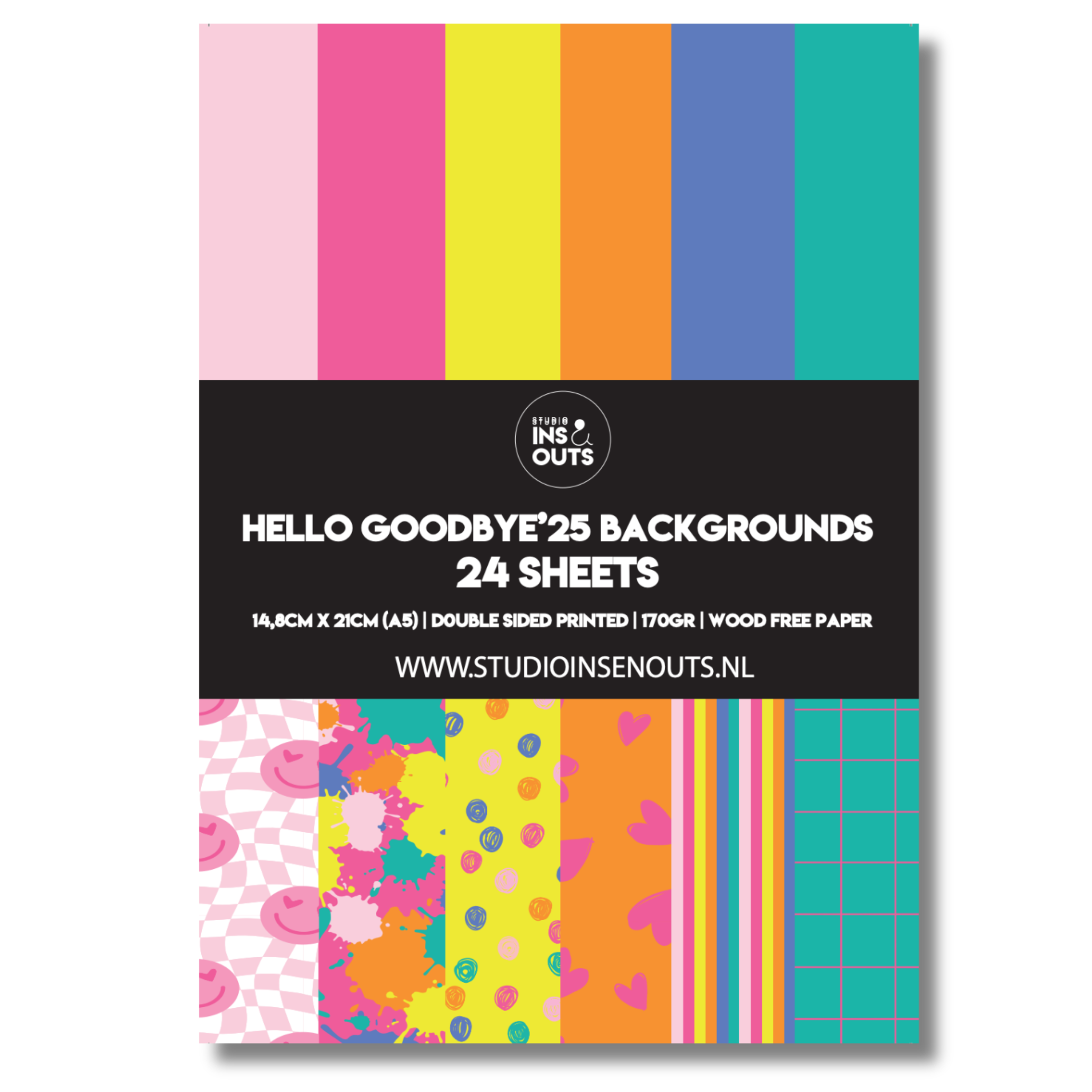 Dit paperpad is onderdeel van de Hello Goodbye'25 collectie en speciaal ontwikkeld voor invulboeken en fotoboeken van Studio Ins & Outs. Combineer het papier makkelijk met andere items uit de collectie, zoals stickers, polaroidkaartjes, quotekaartjes en washi tape!