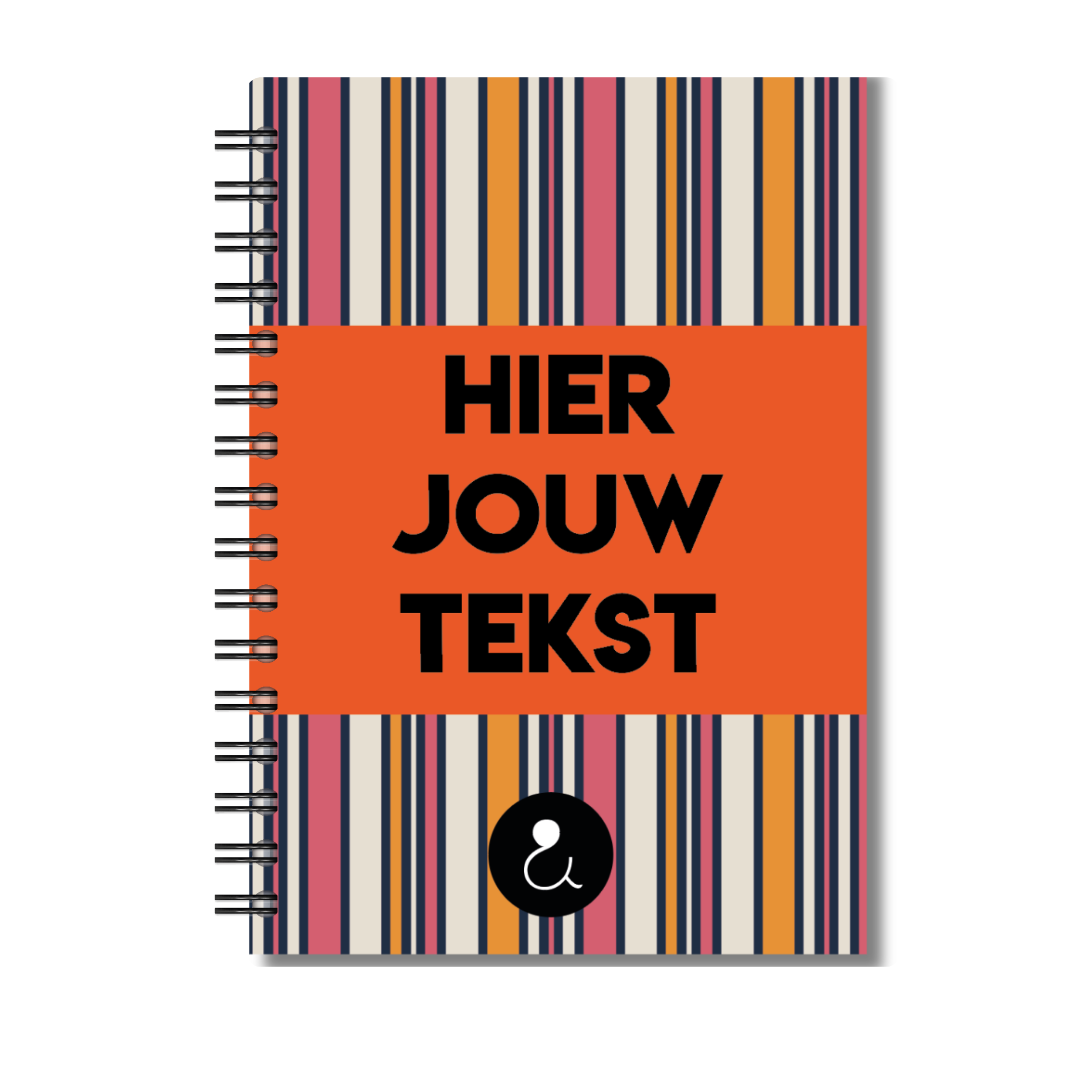 Plakboek A5 Op Maat | Fotoboek Eigen Tekst | Gepersonaliseerd Scrapbook | A5 - 14,9x21cm | Strepen Oranje Roze
