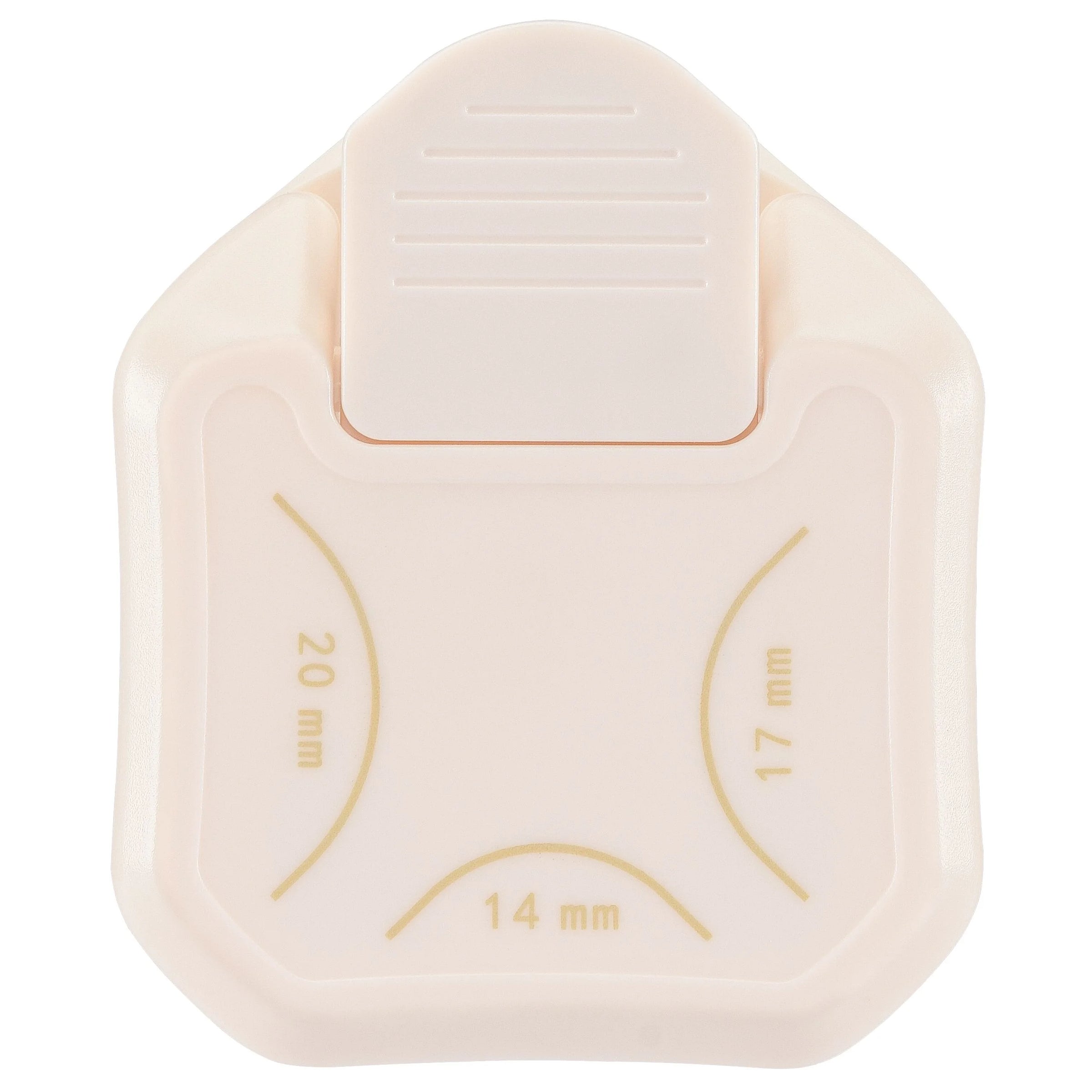 De 3-in-1 hoekpons ponst ronde hoeken in drie verschillende maten: 14 mm, 17 mm en 20 mm. Wissel gemakkelijk tussen de formaten voor kleine details of opvallende afgeronde hoeken, helemaal afgestemd op jouw creatieve project.