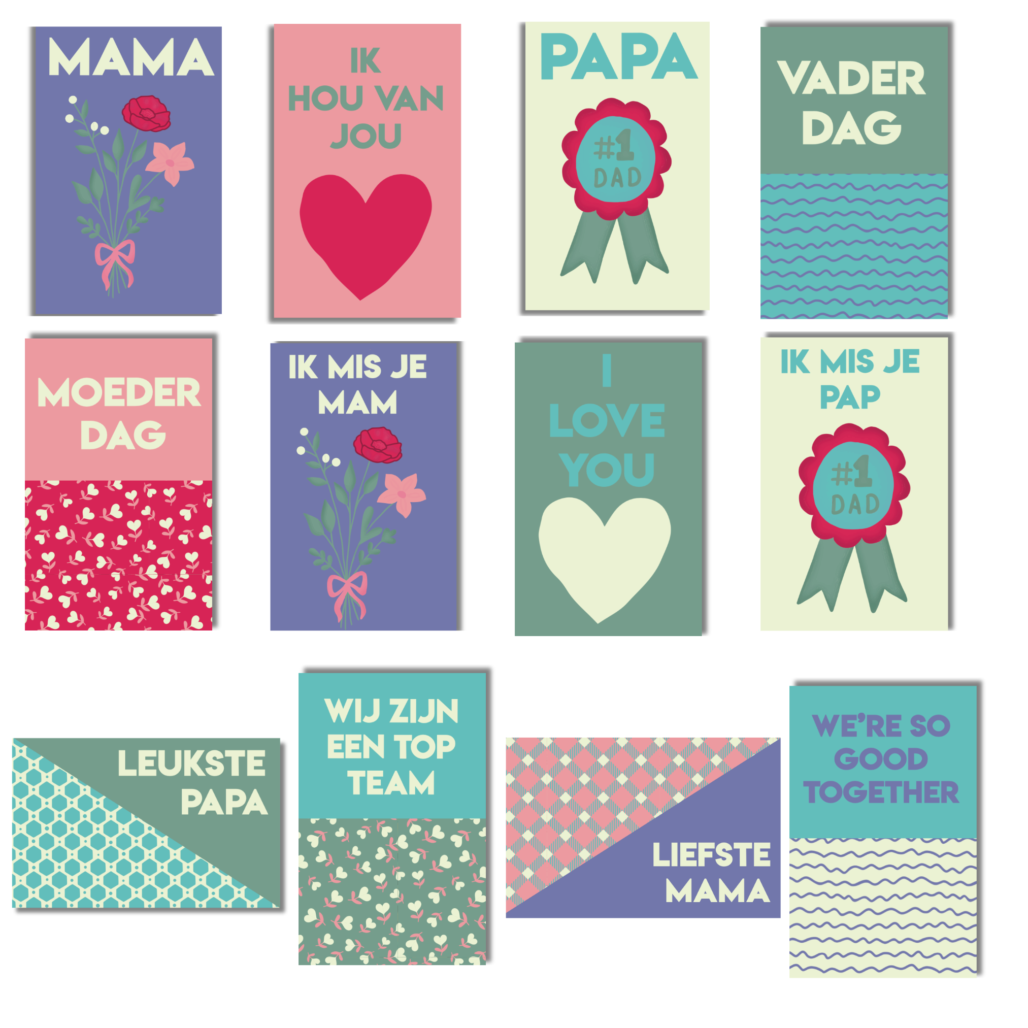 Vaderdag en Moederdag kaartjes in de set