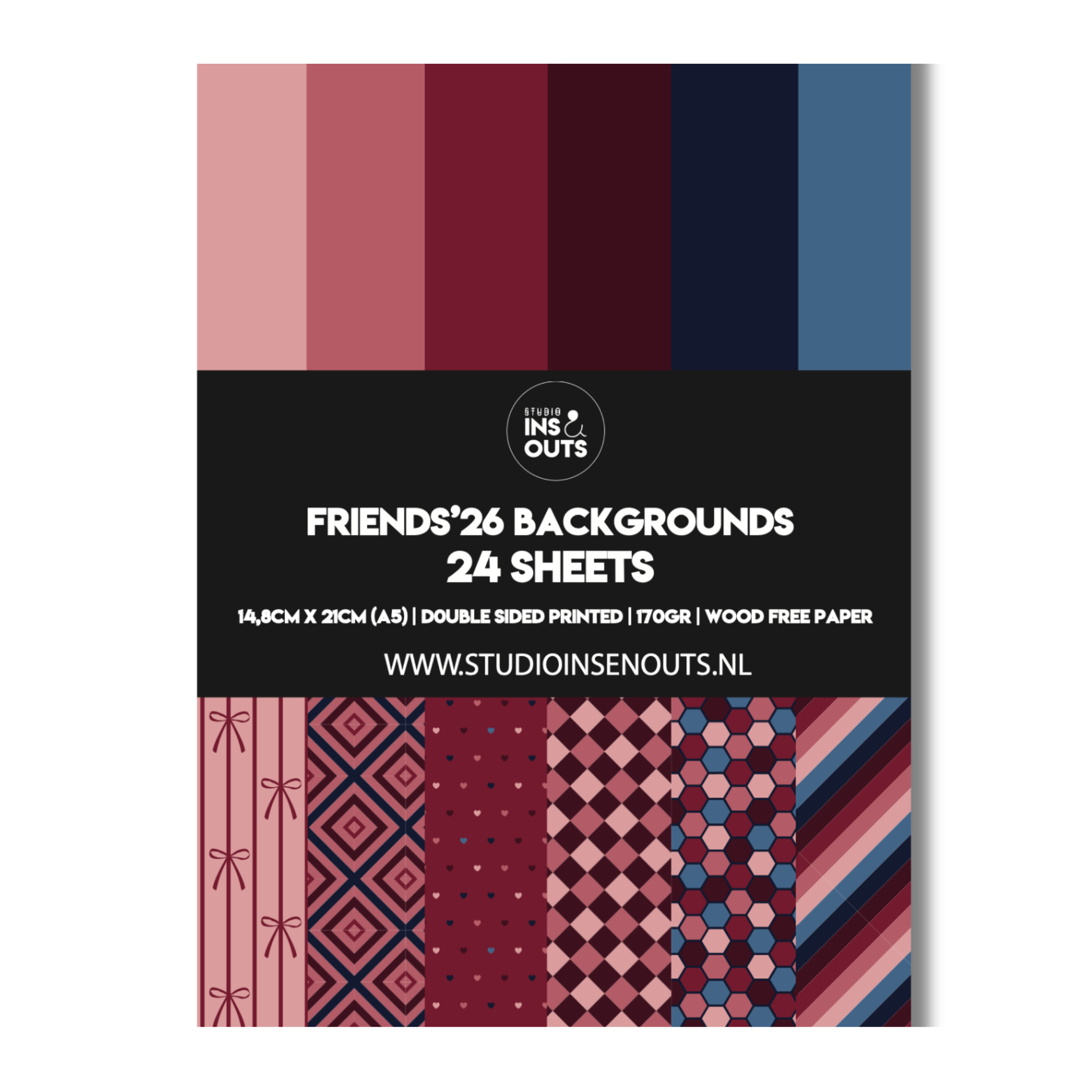 Dit paperpad is ontwikkeld voor gebruik in invulboeken en fotoboeken van Studio Ins & Outs, maar is ook geschikt voor andere scrapbook projecten. Het paperpad is goed te combineren met de stickervellen, quote kaartjes, polaroidkaartjes en washi tape uit dezelfde collectie. De Valentijn'26 collectie maakten we in dezelfde kleuren en patronen en is ook goed te combineren met de artikelen uit de Friends'26 collectie.