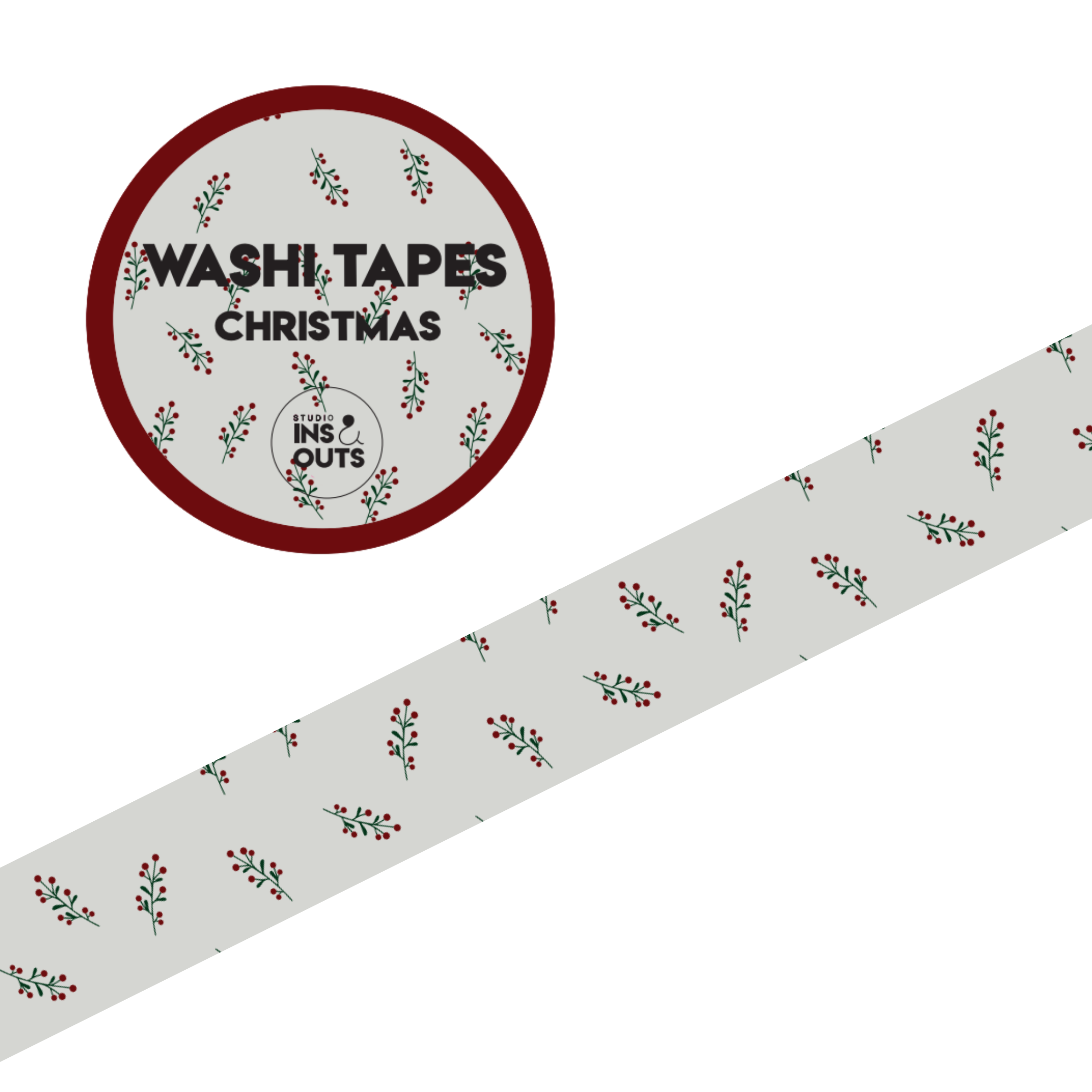 De Brede Washi Tape Christmas’25 van Studio Ins & Outs brengt direct de gezellige kerstsfeer in je creatieve projecten. Deze stijlvolle tape heeft een subtiel patroon van rode bessen en groene takjes op een zachte grijze achtergrond — perfect voor de feestdagen. Gebruik de tape om je kerstcadeaus, kaarten of scrapbookpagina’s een natuurlijke en warme uitstraling te geven.