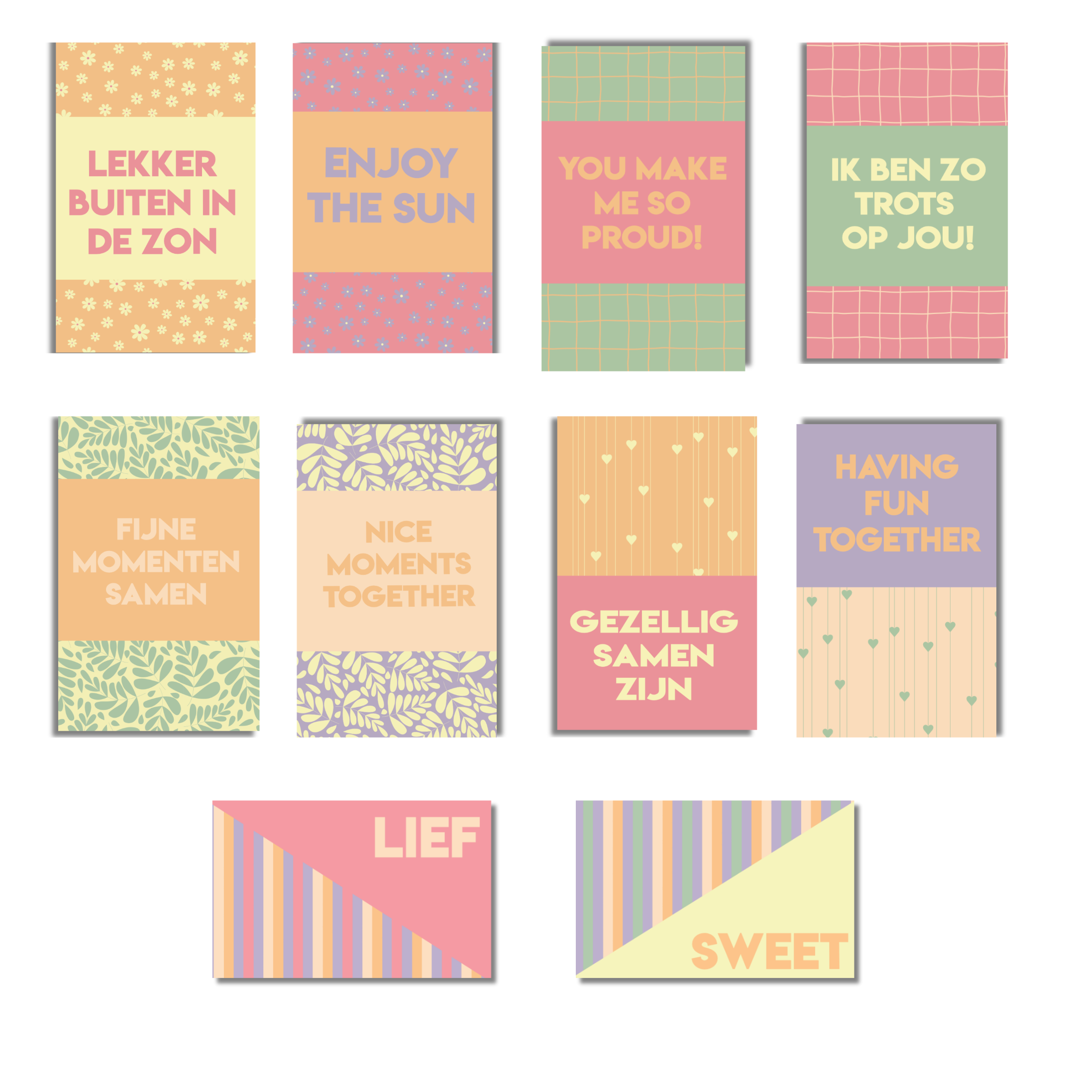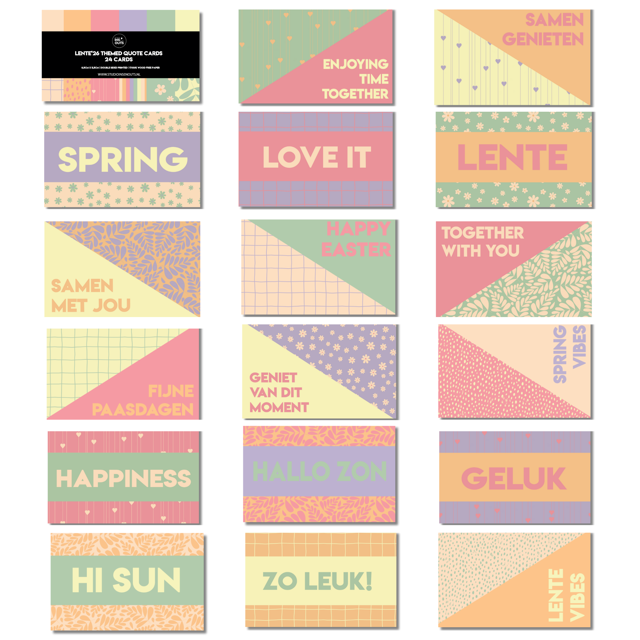 • Quote kaartjes: 24 kaartjes met korte Nederlandse en Engelse teksten over lente, samen zijn en genieten. Geschikt voor fotoboeken, journals en invulboeken.