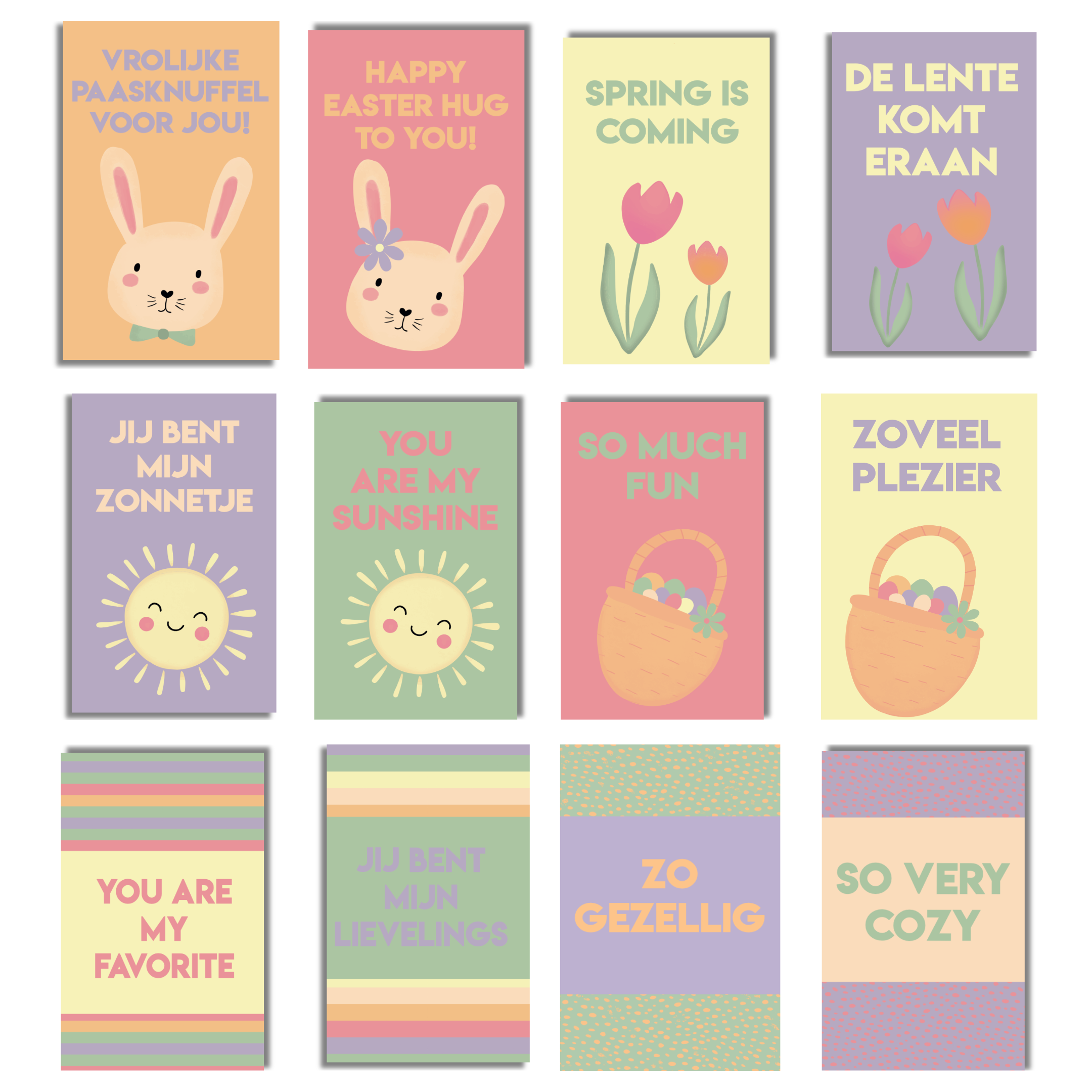 Tekstkaartjes met lente- en Paasthema