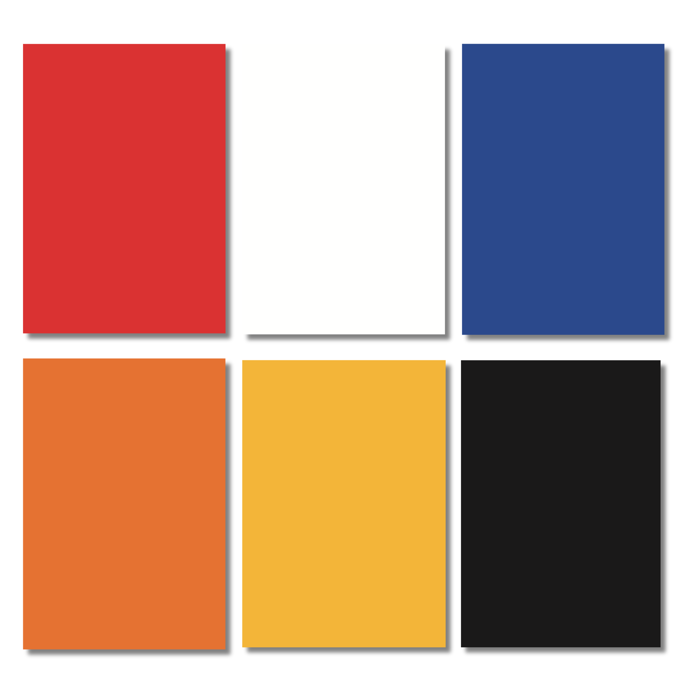 - Kleuren: rood, wit, blauw, oranje, geel en zwart
