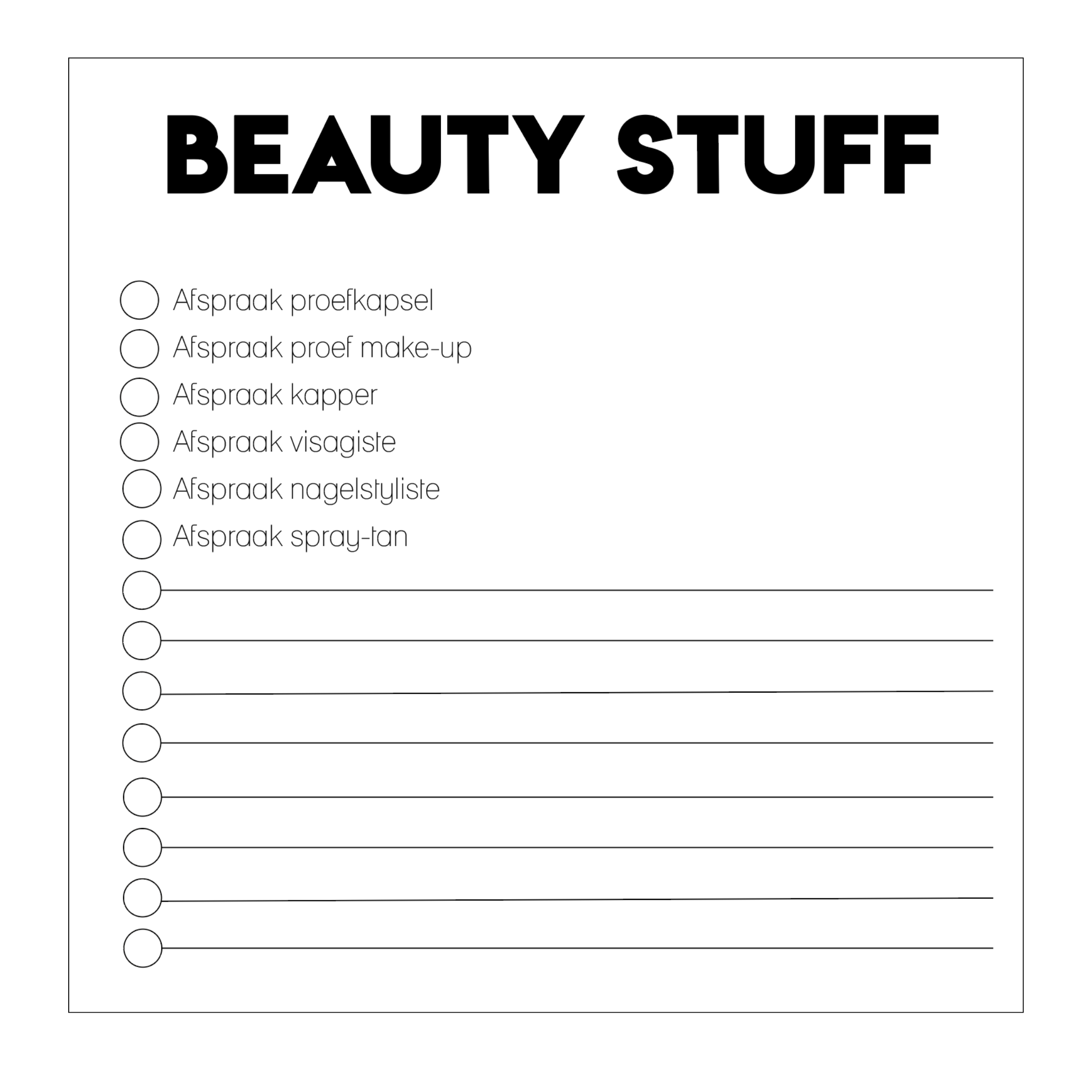 - Indeling: Invulpagina’s, checklists, notitiepagina’s en moodboards