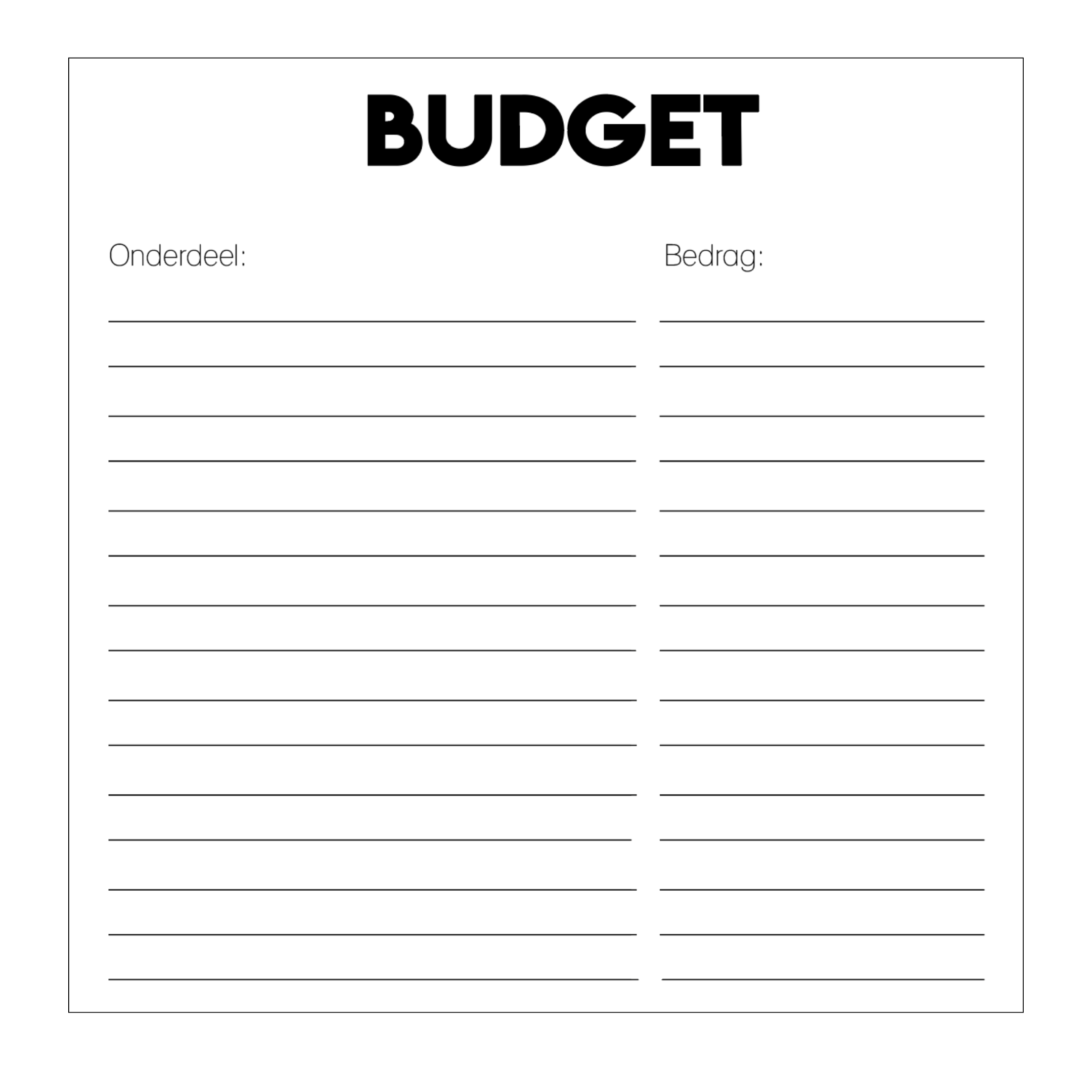 - Budgetoverzicht met pagina’s voor offerte en uitgaven