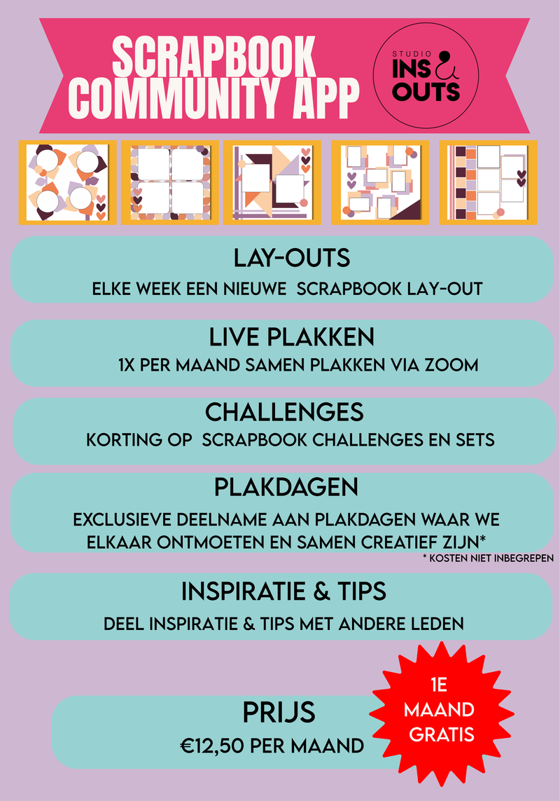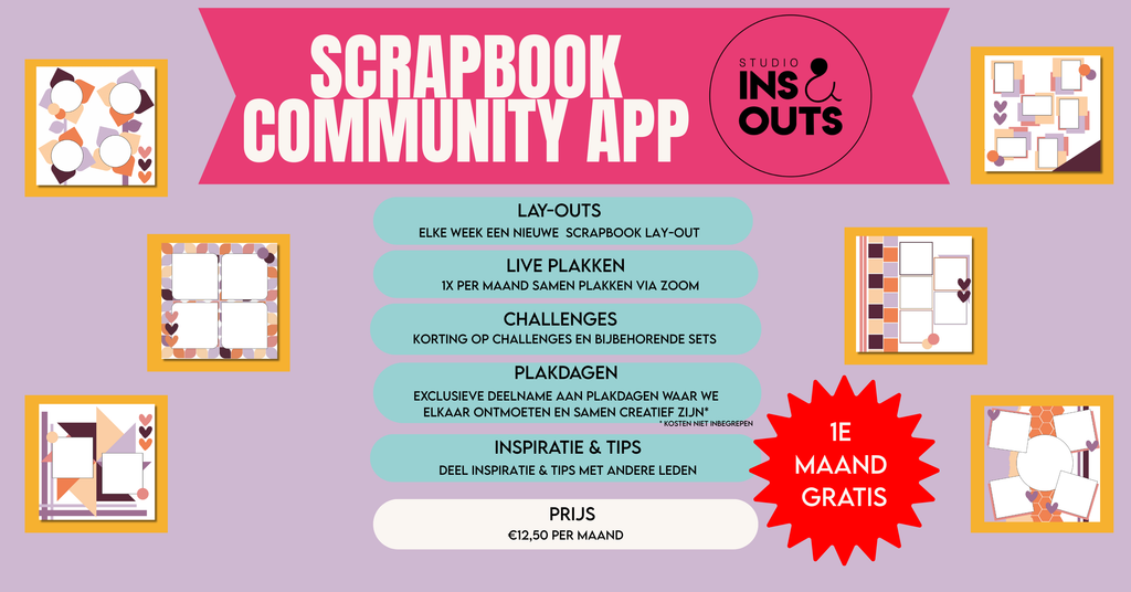 Elke week ontvang je een nieuwe scrapbook lay-out gemaakt door ons in de Community App. Zo heb je steeds weer nieuwe inspiratie voor je plakboek. En ook leuk... deze pagina's delen met andere community leden (niet verplicht).