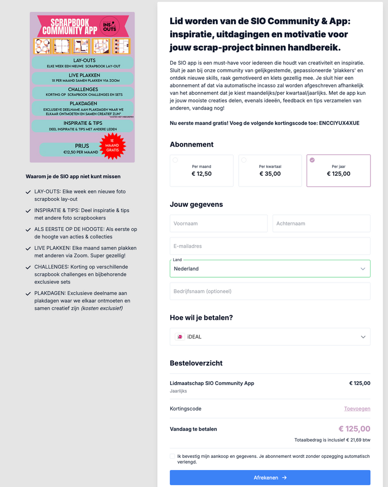 We maken in het jaar een aantal leuke extra scrapbook challenges waar je als community lid met korting mee kan doen. Ook hoort hier een exclusieve set bij die je af kan nemen, maar dit hoeft niet.
